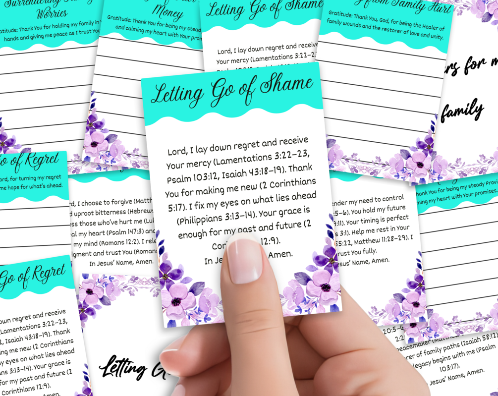Are you struggling to release the past and step into God’s peace? This set of 36 printable cards — featuring 18 powerful prayers and 18 heartfelt gratitude statements — is designed to guide you on your healing and emotional renewal journey. Rooted in scripture, each card encourages you to let go of regrets, release bitterness, and embrace the freedom God has for you.